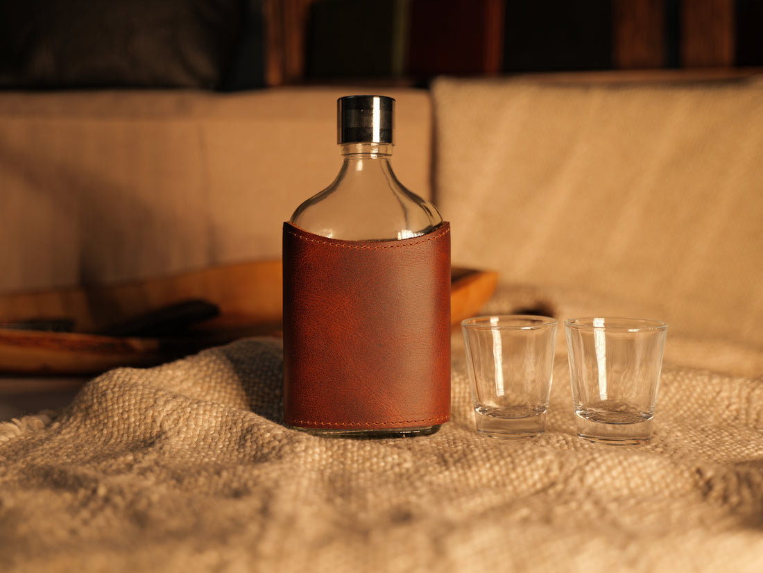 Glass Whiskey Flask with Premium Leather Sleeve